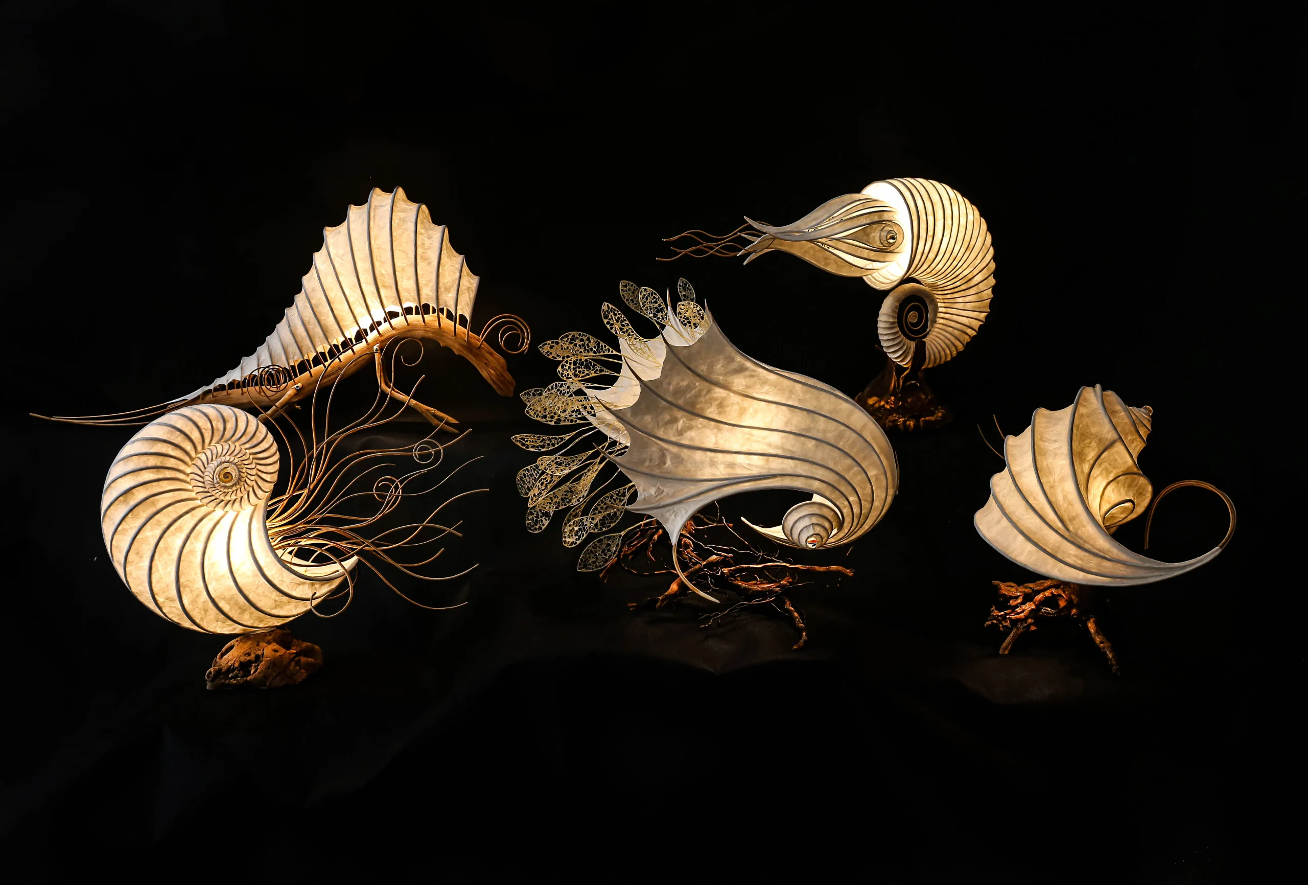 أحمد أميرخاني فنان إيراني متخصص في تصميم وتنفيذ المنحوتات الضوئية منذ أكثر من 8 سنوات. تستلهم أعماله من الطبيعة والهندسة العضوية، وتُصنع يدوياً باستخدام طبقات من الورق المصنوع يدوياً، مع الألياف الطبيعية والخشب.